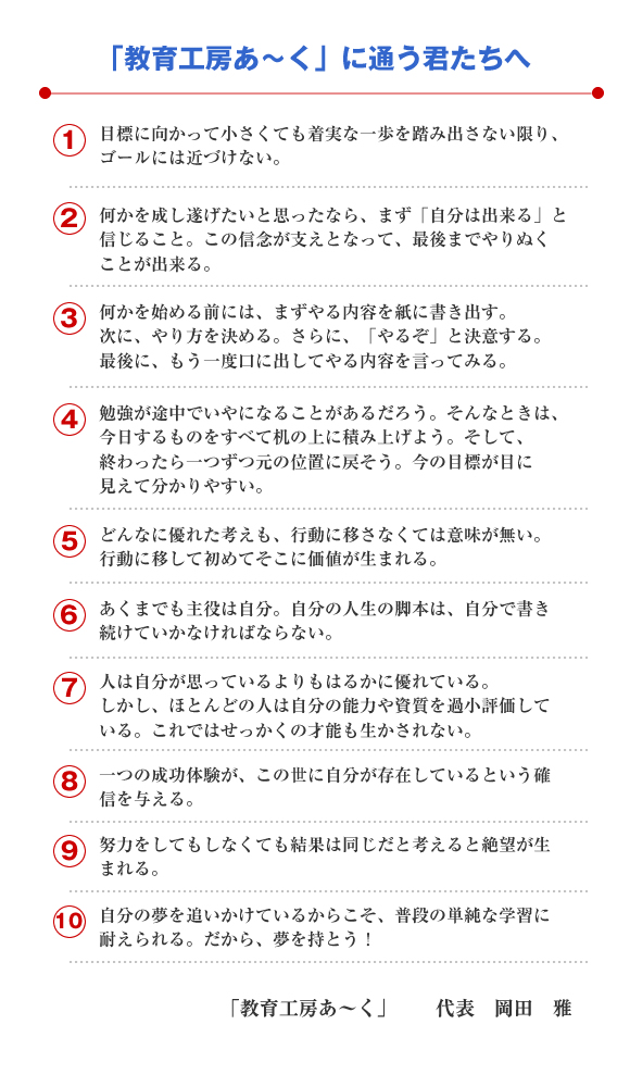 個別指導の学習塾『教育工房あ~く』ホームトップへ